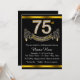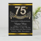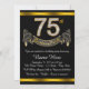 Elegante Diamantenzahlen und Banner schwarz und gold 75. Geburtstagsfeier Einladung. Diese schöne schwarz-goldene Einladung zum 75. Geburtstag ist für Ihre Veranstaltung leicht angepasst. Dieses auffallende Design funktioniert gut für einen Mann oder eine Frau.