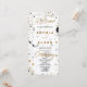Feiern Sie Ihre Gewerkschaft mit dem Hochzeitsprogramm der modernen Celestial Moon Sun and Stars Wedding Suite. Dieses elegante Design besticht durch ein himmlisches Motiv in Schwarz und Gold, das eine himmlische Reihe von Sternen, Sonnen und Monden vor einem unberührten, weißen Hintergrund präsentiert und so einen himmlischen Wandteppich kreiert, der so bezaubernd wie der Nachthimmel ist. Der Programmtext wird kunstvoll in einem Mix aus einfachem Druck, dekorativem Druck und aufwändigem Skript präsentiert, das eine Touch von Raffinesse und Launen hinzufügt. Die Schwarz- und Goldfarben harmonieren perfekt mit dem Himmelsthema und schaffen einen atemberaubenden visuellen Kontrast, der Ihre Gäste sicher begeistern wird. Auf der Vorderseite des Programms werden die Gäste mit dem Wort "Willkommen" begrüßt, gefolgt von den Namen der Paare, dem Datum der Hochzeit und dem Ort, sowie der Reihenfolge der Zeremonie. Auf der Rückseite des Programms werden die Mitglieder der Hochzeitsfeier aufgelistet, um sicherzustellen, dass jeder, der an Ihrem besonderen Tag beteiligt ist, anerkannt und geschätzt wird. Dreh über das Programm und du wirst feststellen, dass die Rückseite das gleiche himmlische Design wie die Vorderseite aufweist und so eine zusammenhängende und visuell atemberaubende Präsentation schafft. Diese sorgfältige Liebe zum Detail sorgt dafür, dass jeder Aspekt des Programms den himmlischen Stil widerspiegelt und die Bühne für eine Hochzeitsfeier aus dieser Welt schafft. Ob Sie ein Sterngucker, ein Mondkind oder einfach jemand, der die Schönheit des Kosmos schätzt, dieses Hochzeitsprogramm ist die perfekte Wahl für jeden, der himmlische Lieben hat. Es ist eine himmlische Feier der Liebe und des Engagements, an die man sich bestimmt für immer erinnern wird.