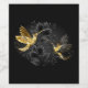 Schmuck aus schwarzem und goldenem Schmuck, der mit grauem Hintergrund und Pflanze geschmückt ist. Schmuckvögel. Goldener Vogel. Goldvogel.
