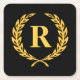 Black and Gold Laurel Wreath Monogram Rechteckiger Pappuntersetzer