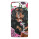 Telefongehäuse mit Black und Tan Cavalier King charles spaniel art design, floral Hintergrund in rosa Farben. Rose, Nelken. Ein großartiges Geschenk für Cavalier Liebhaber. Dog-Telefongehäuse. Verfügbar in mehreren Optionen.
