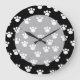 Black and White Animal Paw Print Pattern. Große Wanduhr
