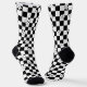 Cute and stylish black and white checkered socks with chessboard pattern and little flowers .