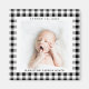 Grafischer und kühn schwarz-weißer Gingham-Karo ist ein charmanter Weg, um das Foto eines neuen Babys zu rahmen und die Ankunft mit einem quadratischen Magneten mit dem Namen und Geburtstag zu feiern. Machen Sie diesen Baby-Magneten für einen neuen Elternteil, Großeltern und Familie oder Freunde.