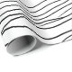A black and white abstract seamless pattern wrapping paper featuring hand-drawn wavy horizontal lines of varying thickness and spacing. The flowing design evokes the look of waves, topographic contours, or natural wood grain, creating an organic and calming visual rhythm.