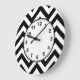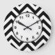 Black and White Large Chevron ZigZag Pattern Große Wanduhr
