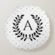 Black And White Laurel Monogram Polka Dot Pattern Rundes Kissen