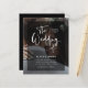 These Modern, Budget Wedding Einladungen feature your own personal foto covering the background completely. A sheer black overlay contains white trendy script typography, and the back of the card is black. Glam, stylish look your guests will love!