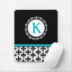 Dieses stilvolle und elegante mit Monogramm Mousepad besticht durch ein Design in Schwarz, Aqua Blau und Weiß, sowie durch den Originalton oder Text Ihrer Wahl.