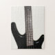 Partielle Ansicht einer schwarzen Bassgitarre abgeschieden auf weißem Hintergrund.