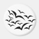 Dieser Magnet zeigt eine Sammlung einfacher Bilder von Fledermäusen, die in einem Wolkenmuster zusammenfliegen. Die Fledermäuse sind schwarz und der Hintergrund weiß. Kinder sind sich sicher, dieses niedliche Design Liebe.