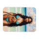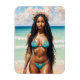 Dieser Magnet zeichnet sich durch Ölgemälde aus, die ein wunderschönes schwarzes Mädchen mit langen Haaren in Drehungen oder Locs tragen, das einen aquamarinen Bikini und eine Blume aus pfirsichfarbenen Blume trägt. Sie ist am Strand, hinter ihr liegt das Meer. Sexy Sommer-Kern Küstenästhetik.
