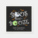Boos & Booze Halloween Papierserien für Erwachsene mit schwarzem Hintergrund, fliegenden Fledermäusen, einem strahlend blauen Geist, der durch "Boos" fliegt, einer Tasse schwindelnden grünen Schnaps mit rotem Augapfel und Stroh.