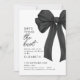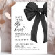 Eine moderne Drehung, den Knoten zu binden. Diese elegante Brautdusche mit einem kühnen schwarzen Bogen und minimaler Typografie schafft ein elegantes und stilvolles Aussehen für die Braut, die sie sein soll. Ideal für monochrome Themen, elegante Cocktailabende oder Fashion-Forward-Feiern. Einfache Anpassung an den Namen, Datum, Uhrzeit und Standort der Braut. Ideal für Brautpartys, Übernachtungen oder Verlobungen mit schicker, moderner Note.