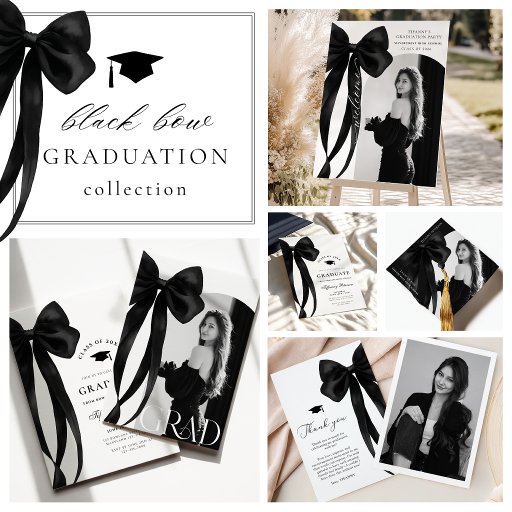 Black Bow Graduation Thank You Card with 1 photo slot.