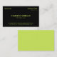 Minimalistische einseitige Visitenkarte mit leuchtend kalk grünen Schriftart gegen schwarz, die andere Seite leer limigrün. Machen Sie eine kühne Aussage mit einer schwarzen Visitenkarte mit neonfarbenen, grünen Schriftart! Diese Visitenkarte wird sicherlich bemerkt werden, und sie ist perfekt für jeden Beruf oder Geschlecht. Schwarzer Hintergrund und neongrüne Schriftart schaffen ein modernes und berufliches Aussehen, das Ihren potenziellen Kunden einen bleibenden Eindruck verlasse.