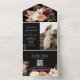 Die elegante und praktische Einladung zur Hochzeit in Schwarz und Bordeaux zeigt romantische Aquarellfloralen und beinhaltet einen eigenen Foto-Bereich und einen scannbaren QR-Code für UAWG- oder Hochzeitswebseiten. Die abreißende UAWG-Postkarte verleiht Eleganz und Einfachheit, perfekt für Herbst- oder Hochzeitsthemen.