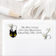 Weiße Hintergrundfarbe mit eleganter schwarzer Kätzchen mit goldenen Augen. Passen Sie Ihren Namen und Ihre Adresse an, ändern Sie auch den Schriftart (Typ) oder verschieben Sie die Bilder, wenn Sie möchten.