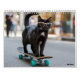 A black cat is seen in a humorous and sweet depiction in each calendar month.