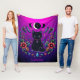 Black Cat Celestial Mystical Purple Pink Fleecedecke