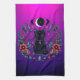 Black Cat Celestial Mystical Kitchen Towel features an enchanting black cat surrounded by moon phases, stars, flowers, crystals, and magical botanical details on a vibrant purple and pink background. This mystical fantasy design blends celestial, witchy, and gothic-inspired elements for a bold, colorful look that feels both dreamy and magical. A beautiful choice for black cat lovers, moon gazers, crystal lovers, and anyone drawn to mystical, spiritual, or celestial artwork.