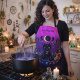 Black Cat Celestial Mystical Apron features an enchanting black cat surrounded by moon phases, stars, flowers, crystals, and magical botanical details on a vibrant purple and pink background. This mystical fantasy design blends celestial, witchy, and gothic-inspired elements for a bold, colorful look that feels both dreamy and magical. A beautiful choice for black cat lovers, moon gazers, crystal lovers, and anyone drawn to mystical, spiritual, or celestial artwork.