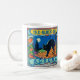 Ein schönes Vintages Zitrusfruchtlabel. Das schwarze Katzenlabel wird auf einer Tasse neu verwendet.