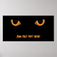 Schwarze Katzenaugen und orangefarbene Halloween-Party-Poster. Die angezeigte Größe ist 12"x24".