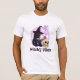 Eine magische schwarze Katze mit Hexenhut, Zauberbuch und spukhaften Schwänzen. Perfektes Halloween-Design für Katzen- und Zauberfreunde
