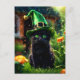 Black Cat in Green St. Patrick's Day Hexenhut Postkarte