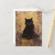 Eine schwarze Katze mit lila Details über einen Vintag aussehenden Hintergrund Die künstlerische Arbeit der KI