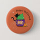 Niedliche schwarze Katze mit einem orangefarbenen Halloween-Knopf auf den Zahn. Auch in blau verfügbar. © ArianeC Illustrations-Alle Rechte vorbehalten