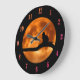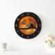 Black Cat Orange Moon Große Wanduhr
