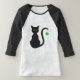 Ein Silhouette Cartoon einer schwarzen Katze mit grünen Augen. Ein grüner Stern hängt vom Schwanz der Katze.