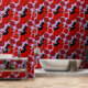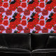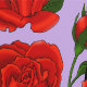 Ein Profil einer schwarzen Katze mit rote Rosen in einer lila Umgebung