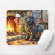 Black Cat Sitting Fireplace with Christmas Lights Mousepad