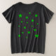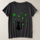 Ein Silhouette Cartoon einer schwarzen Katze mit grünen Augen. Ein grüner Stern hängt vom Schwanz der Katze. Ein Sternenhimmel von passenden Sternen ist vorne und hinten.