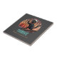 Black Cat Sunset: Eine Reise zum THRIVE Keramik Kachel: Eine schwarze Katze, die einen Kapitänhut trägt und am Bogen eines Schiffes stehend ist und in einen lebendigen Retro-Sonnenuntergang segelt.
