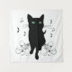 Black Cat Surrounded by Whispering Notes of Music Wandteppich