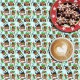 Niedliche Schwarze Katzen in oder um rot-grüne Weihnachtsgeschenke mit Schneeflocken vor hellblauem Hintergrund