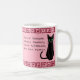 Erhöhen Sie Ihren Morgen mit der neuen Weisheit von Lao Tzu, die durch den intensiven Blick meiner illustrierten schwarzen Katze mit auffallenden grünen Augen zum Leben erweckt wurde. Dieses Design der Tasse ist Teil der Black Cat Wisdom Kollektion. Es erfasst das Wesen der Einfachheit und Zufriedenheit. Ein rosiger Hintergrund mit einem dunkleren Rose-farbenen Rand Set die Bühne für eine schwarze Katze. Sie ist ein Symbol für Rätsel und Gnade. Die alten Worte von Lao Tzu, "Manifest Klugheit, Umarmung der Einfachheit, reduzierte Egoismus, haben wenige Wünsche", präsentiert bietet eine tägliche Erinnerung des taoistischen Weges zur Harmonie. Ideal für diejenigen, die sich vor den Aktivitäten des Tages entspannen möchten. Es ist eine Art philosophischer Einsicht in ihre Zuhause oder ihr Büro.