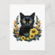 Black Cat With Flowers Begleitkarte