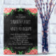 © Sunny Mars Designs - Blumengestelle: Pink on Chalkboard 5" x 7" Einladungen Hochzeitsfeiern - Individuelle, moderne, einzigartige, elegante, stilvolle, schicke, formale Black Chalkboard Hochzeit laden mit einem schönen, prächtigen, hübschen rosa Wirblen tropischen Hibiskus-Design an einer Tafel oder Kreide Hintergrund.