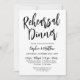 Charmante Probe-Dinner Einladung mit schwarzen Schriftart auf weißem Hintergrund. Probe Dinner Einladung mit Ihren Namen in einem charmanten schwarzen Skript.