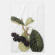 Schöne Vintage schwarze Kirsche botanische Abbildung auf einem einfachen weißen Teetuch.Reife für die Ernte .
