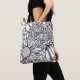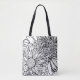 This tote bag features an oversized line art drawing of chrysanthemums in black with a personalized name. Original art from Dogwood & Thistle.