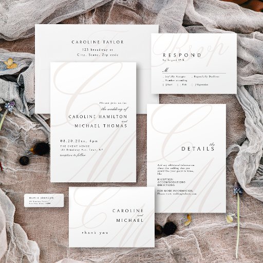 Moderne, klassische RSVP-Hochzeitskarten mit eleganter Kalligraphie und zeitlosen Serif-Schriftart-Details in farblich bearbeitbarem Grau, Schwarz und Weiß, einfach und raffiniert, Ideal für formale Vintage Hochzeit, romantische traditionelle Hochzeit, moderne klassische Hochzeit und andere Veranstaltungen. Sehen Sie sich alle passenden Stücke in der Sammlung an.