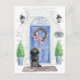 Mit unserer stilvollen Ankündigung kündigen Sie Ihre neue Adresse an: Black Cockapoo blaue Haustür, Begrüßungstafel, Schiefer-Schild, Topiaries und ein blumengeschmücktes Set auf grauem Backstein.