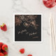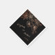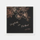 Copper / rose gold line art cherry blossoms and on a black background for a goth wedding. With bride and groom names in an elegant handwritten Floral line art dark wedding paper napkins.