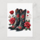 Black Cowboy Boots With Red Roses Postkarte